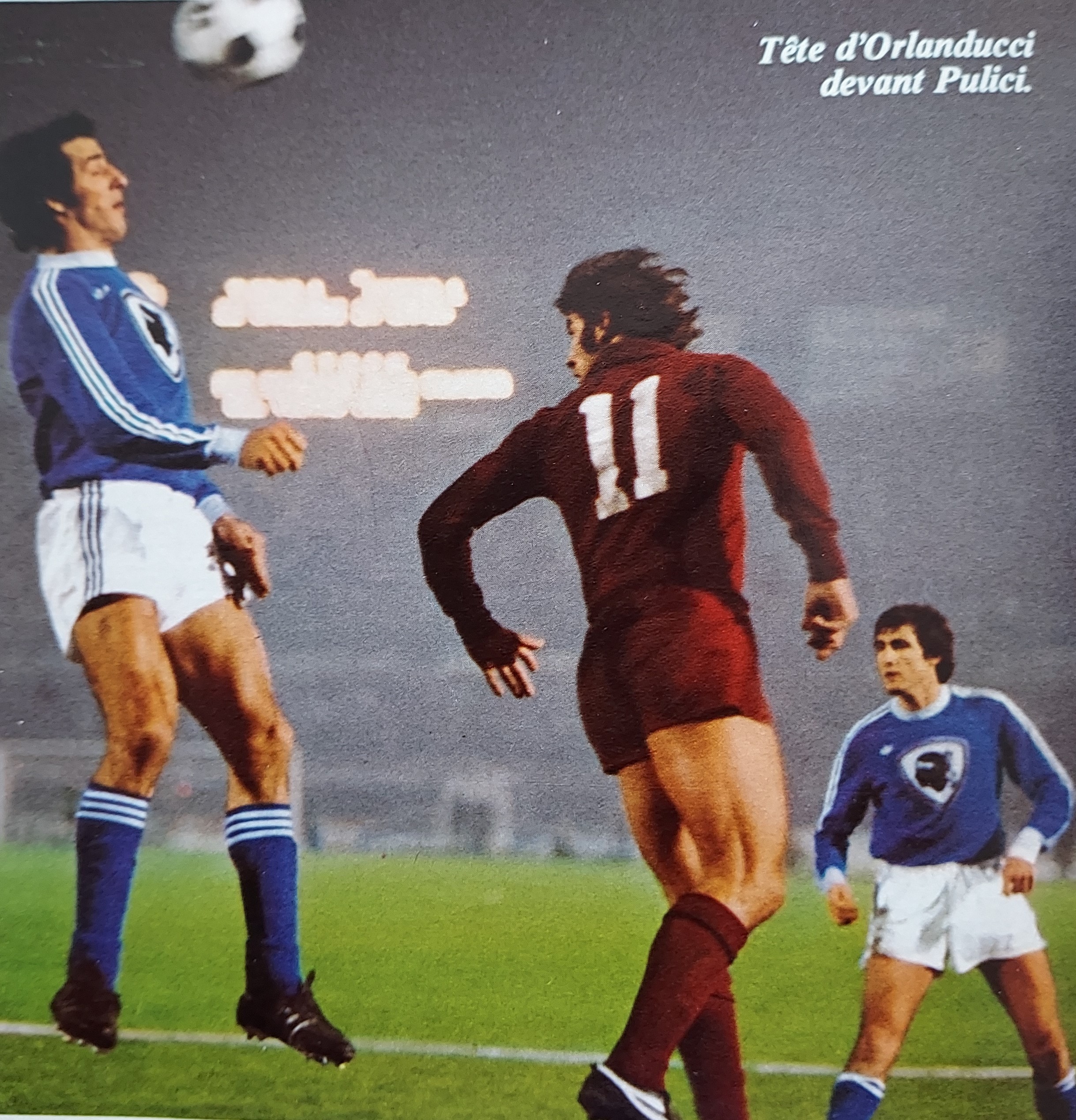 Mais bien sûr qu'il était de l'épopée bastiaise avec son ami Claude PAPI. Papyfoot en a déjà longuement parlé. N'hésitez pas à voir ou revoir ces articles. Ci-dessus par exemple, bon vous l'avez reconnu, c'est Charles ORLANDUCCI. C'est bien lui qui prend le dessus sur l'italien PULICCI du TORINO. Cette épopée restera un grand moment dans sa carrière. En tant que capitaine, il donnera toujours le tempo à son équipe.