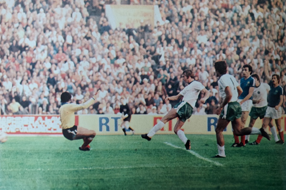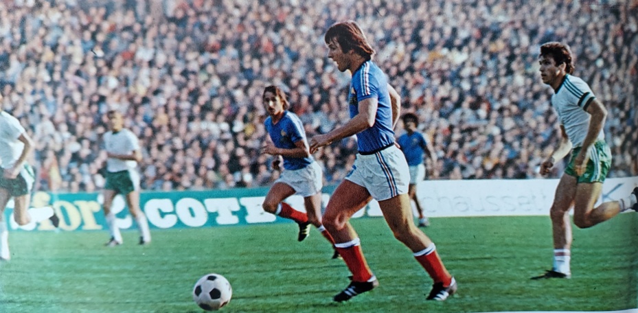 Et le spectacle continue, 3 minutes plus tard. PLATINI adresse une passe à BATHENAY démarqué qui tire au but. Le gardien KRASTEV repousse, mais LACOMBE qui a bien suivi reprend. 0-2. Dommage à la 44ème minute, BONEV trompe BARATELLI sur un coup franc dévié. Allez, on se dit 1-2 à la mi-temps, ça devrait le faire.