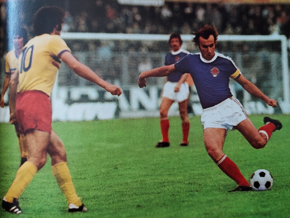 Et quand on lui parle de son plus mauvais souvenir... la défaite de l'Etoile Rouge de BELGRADE en demi finale de la Coupe d'Europe en 1971 face aux grecs du PANATHINAIKOS. Alors l'avez vous reconnu, ci-dessus, il joue une rencontre face à la ROUMANIE... Toujours pas ???